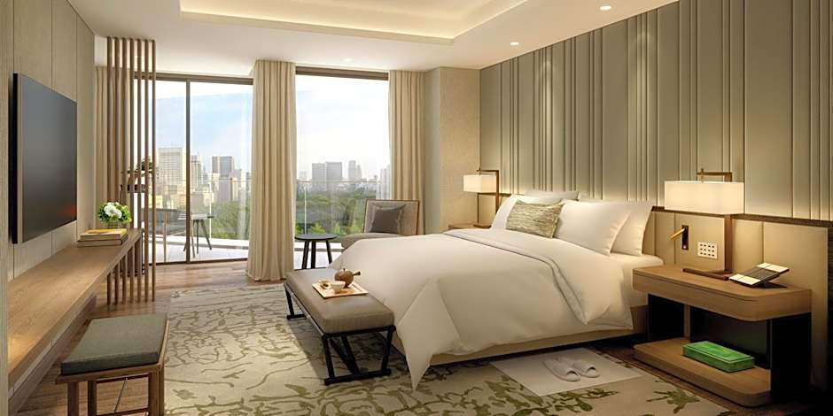 Offering a view of the Imperial Garden, it features a living room and a bedroom fitted with luxurious furnishings. The bathroom comes with a spa bath and a separate shower with dual rain/handheld shower heads. The suite features a large balcony with small gardens.